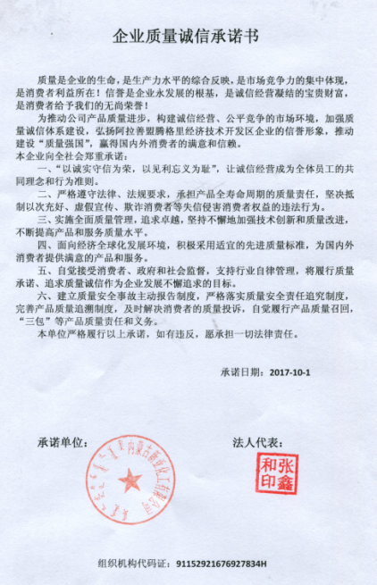 【新亞】企業(yè)質(zhì)量誠信承諾書